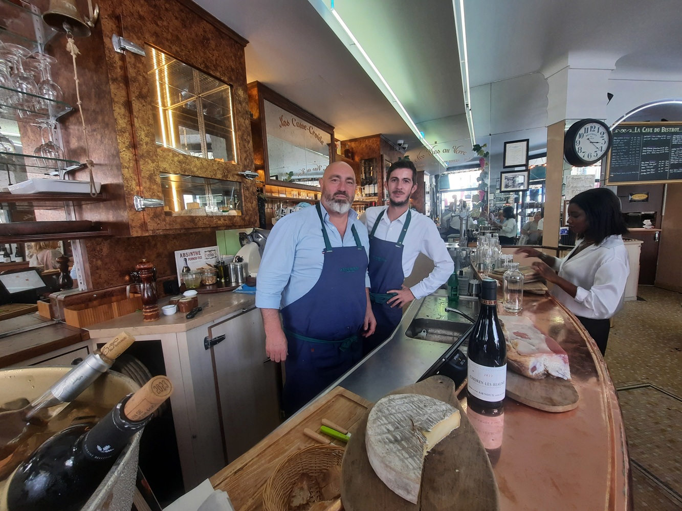 « Rien n’est foutu, tout continue ». C’est comme ça que Vincent Limouzin, citant son ami -et client- le comédien Edouard Baer, décrit le coup de jeune qu’il vient de donner à son Bistrot des Halles (Paris 1er, page 10 de la Tournée des Patrons). Les travaux ont donné un éclat nouveau à la devanture (store, lambrequins, panneaux moulurés style bois de chêne), au bar, aux vitrines, aux glaces, aux mosaïques, etc. tout en respectant scrupuleusement le caractère immuable de ce petit bijou du Paris d’autrefois. Une rénovation menée par un jeune et talentueux architecte-décorateur d’intérieur auvergnat, Victor Chazoulle, qui a notamment travaillé sur la nouvelle Cave de la Petite Périgourdine. Soucieux d’améliorer la vie du personnel aux fourneaux et en salle, Vincent Limouzin, le plus vendéen des patrons parisiens, a fait installer un monte-charge (qui n’existait pas, en dépit de la remontée depuis la cave de près de 20 000 bouteilles chaque année !) et rénové de fond en comble les cuisines. Qu’on se rassure, la qualité de l’assiette et du contenu des verres reste intacte, tout comme le service efficace assuré par Cyril, Mélissa, Léo et l’insubmersible Sylvain !